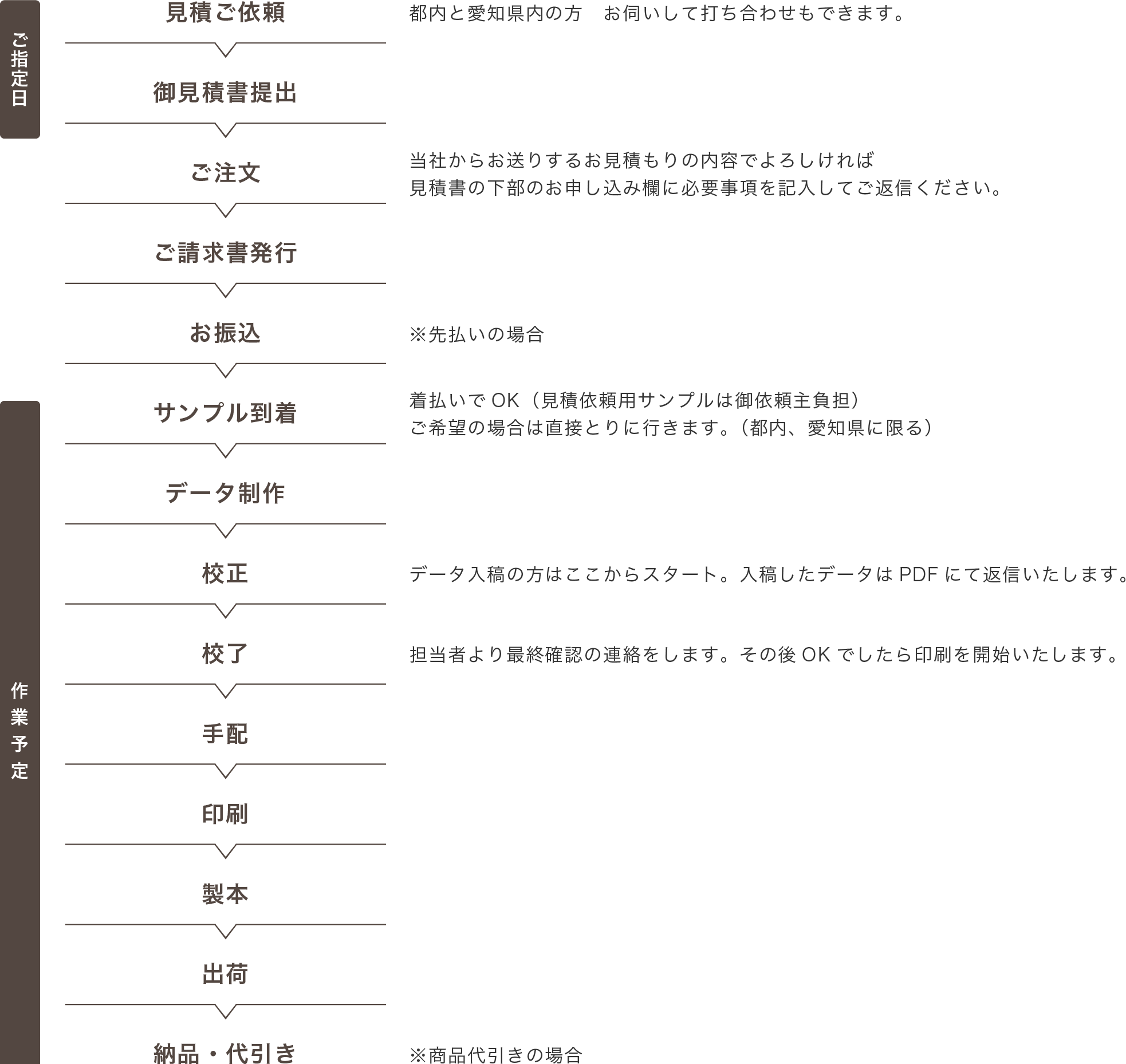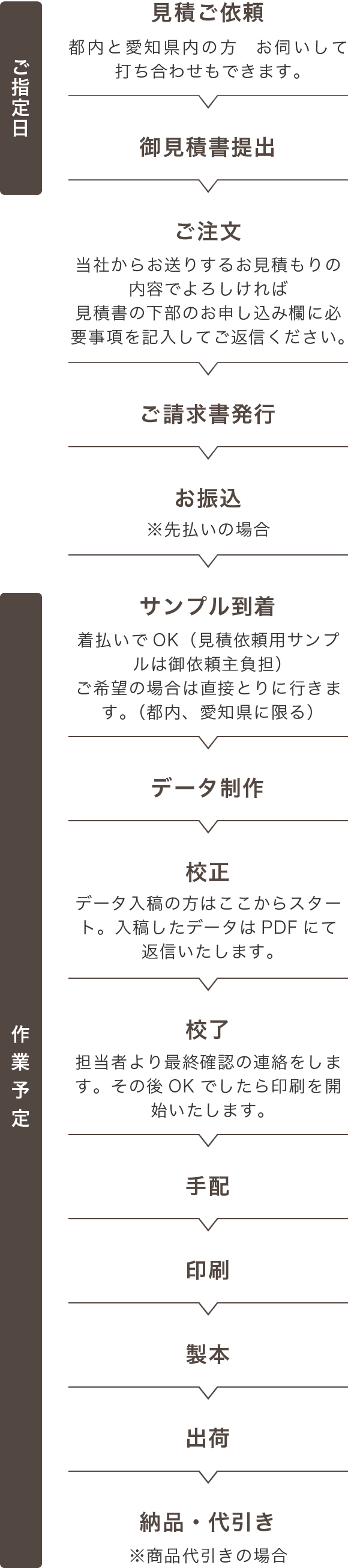 版下データ作製からのお客様には、校正原稿の提出はメール(PDF)で行っております。FAXでも可能です。