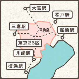 | 東京 | 23区内 中央線沿線 三鷹駅まで |